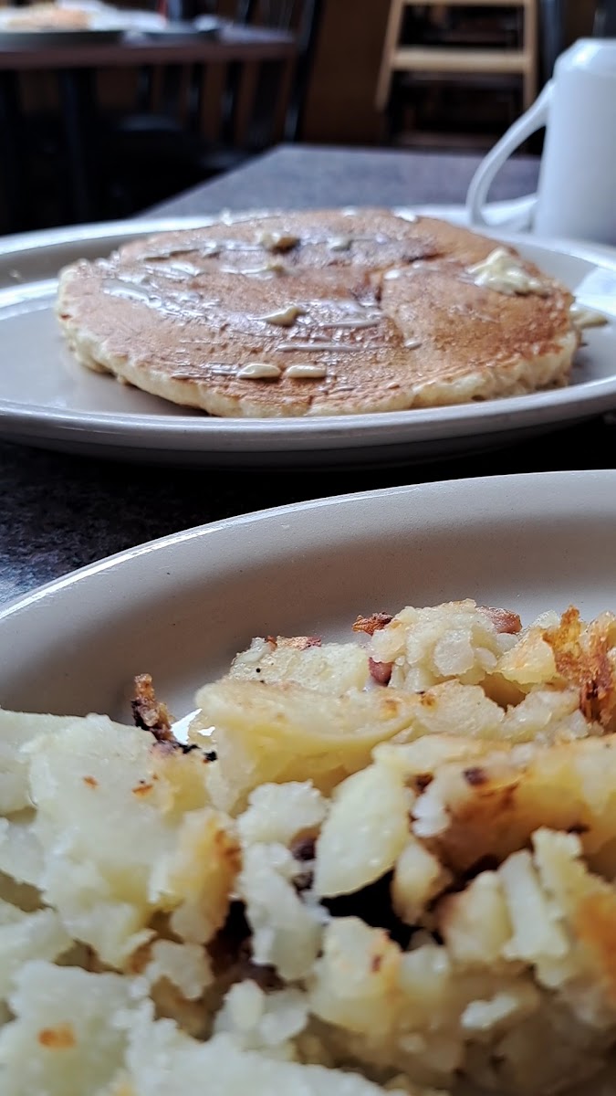 The parking lot was packed when we arrived but managed to get a spot. The restaurant was full but we were seated immediately. We all decided on breakfast with my partner getting butterscotch pancakes and Canadian bacon.Her son got a chocolate chip pancake breakfast sandwich with ham and eggs. I got a Monte Cristo sandwich with "American fries" which was basically home fries. The kid loved his breakfast and ate about half of it. My partner loved her pancakes. I was disappointed in mine because a Monte Cristo is supposed to be battered and deep fried and sprinkled with powdered sugar. This one was just made with French toast and they offered lettuce, tomato, pickles on the side to be added. The Americas fries needed seasoning, as did the scrambled eggs on the kids plate. I could see this was a very popular place and even though I was disappointed, I would give it a second chance because other people like the food